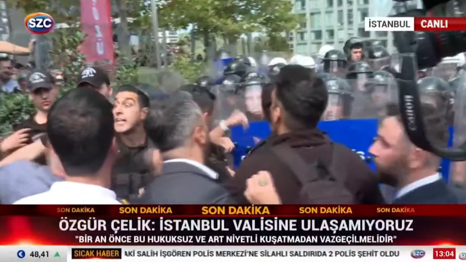 Tekin’in binaya yaklaşmasıyla birlikte saat 12.30 sıralarında çevik kuvvet ekipleri arka tarafta oturan gruba müdahale etti. Müdahale sırasında kısa süreli arbede çıktı.