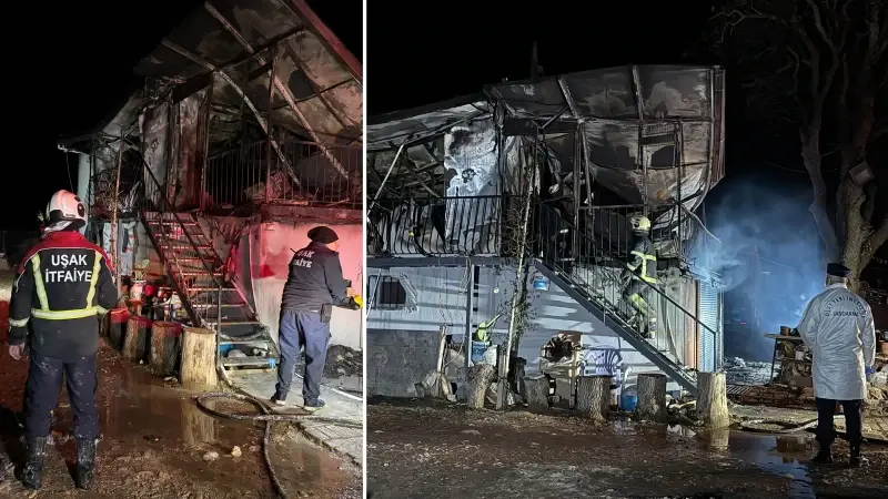 Uşak’ın Sivaslı ilçesinde prefabrik köy evinde çıkan yangında 64 yaşındaki Osman Türkmen ile 62 yaşındaki eşi Fikriye Türkmen yanarak hayatını kaybetti.